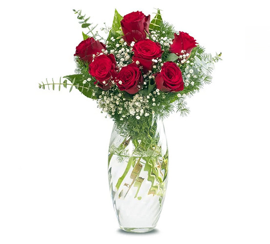 Cam vazoda 7 Adet kırmızı gül,