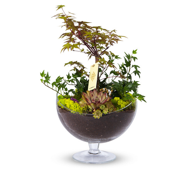 Özel cam kadehte özel bonsai. Sukulentler ve mosslarla birlikte yapılan özel tasarımla hazırlanan çiçeğimiz, ofiste masa önü sehpaları veya masa arkası konsollarda mükemmel bir aksesuar olarak kullanılabilir.