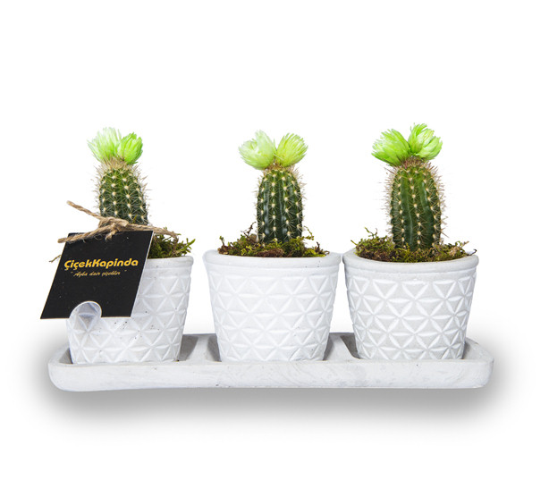Dekoratif Saksıda 3lü Kaktüsler