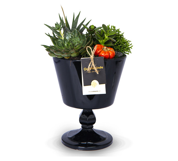 Siyah Kadehte Sukulent Tasarımı