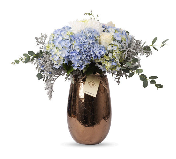 Özel vazoda ortancalar, anastasya, orkideler, güller ve muhtelif yeşilliklerin harika sunumu...