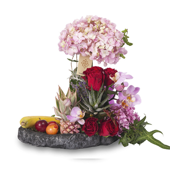 Özel kayada ortanca, gül, orkide, meyveler, lavanta, zebra sukulentin harika uyumu...
