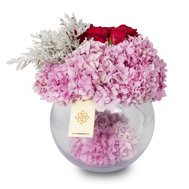 Akvaryum vazoda ortanca ve güller