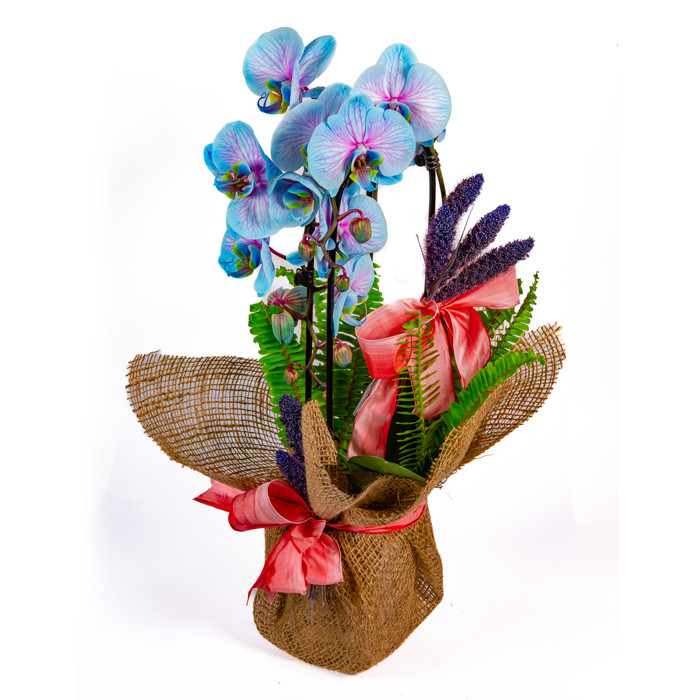 Not: Mavi Pembe Orkide yer alan çiçekler stok durumuna göre farklı boyutlarda olabilir. Ayrıca bazı çiçekler, mevsimsel şartlar sebebiyle çiçek açmamış halde, kapalı olarak gönderilebilir.